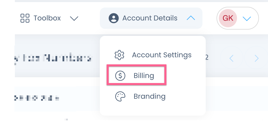 First, click Account Details, then click Billing:
