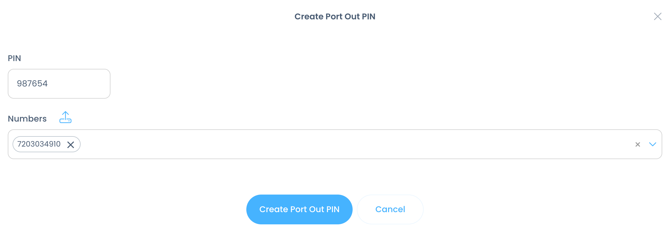 Create the PIN that you would like to use (up to 6 digits) and assign the number(s) that are porting out to this PIN, then click the Create Port Out PIN button. You are welcome to assign as many numbers to this PIN as you would like:
