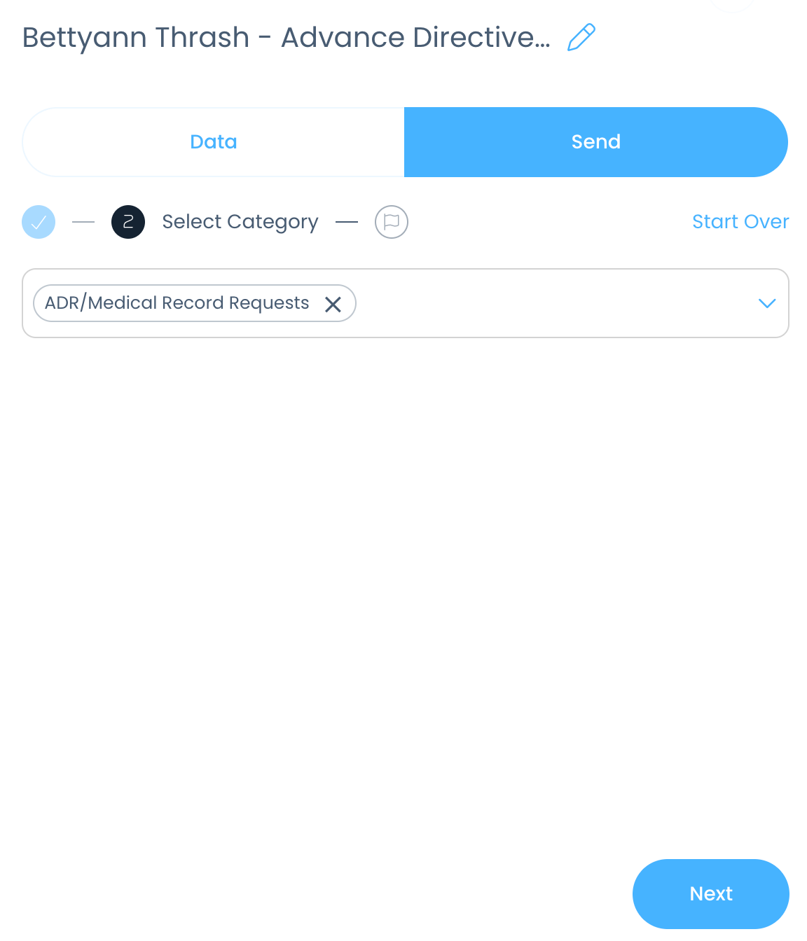 Next, double check the data to make sure all fields are accurate, then click Send: