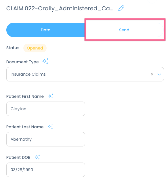 Next, double check the data to make sure all fields are accurate, then click Send: