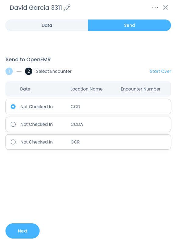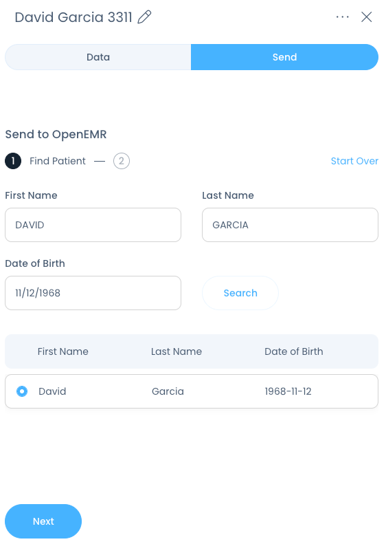 Select the correct patient, then click Next: