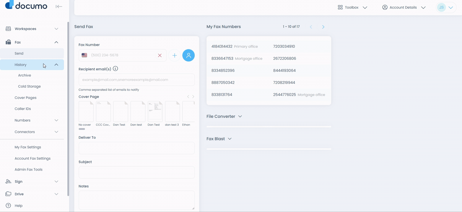 Note: Assigning a user will not give visibility to any faxes sent to the number before assignment. It will however ensure future faxes sent to the number will be visible to the user. This is why resending the fax as described above after assigning a user will allow it to populate in their personal history.