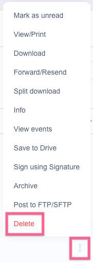 To delete one fax from your history, select the 3 dots next to the fax, then click Delete:
