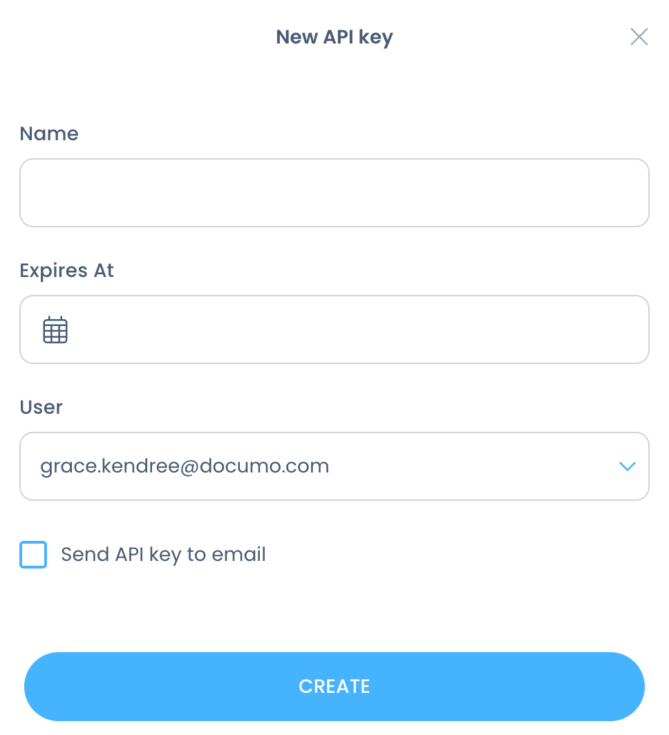 Click Create, and fill out the form. Check the box if you would like the API key emailed to you:
