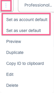 Cover pages in the System and Account sections can be made into account or user defaults: