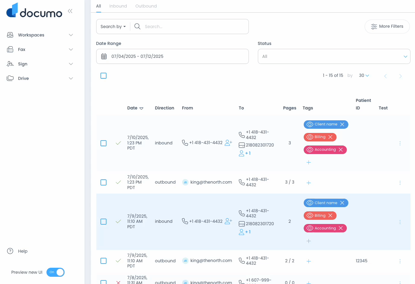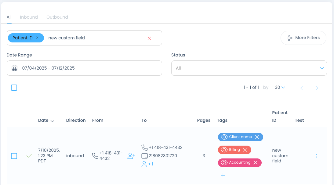 Users can also view custom fields within their Fax History and can update their contents after sending or receiving a fax by viewing Fax Info: