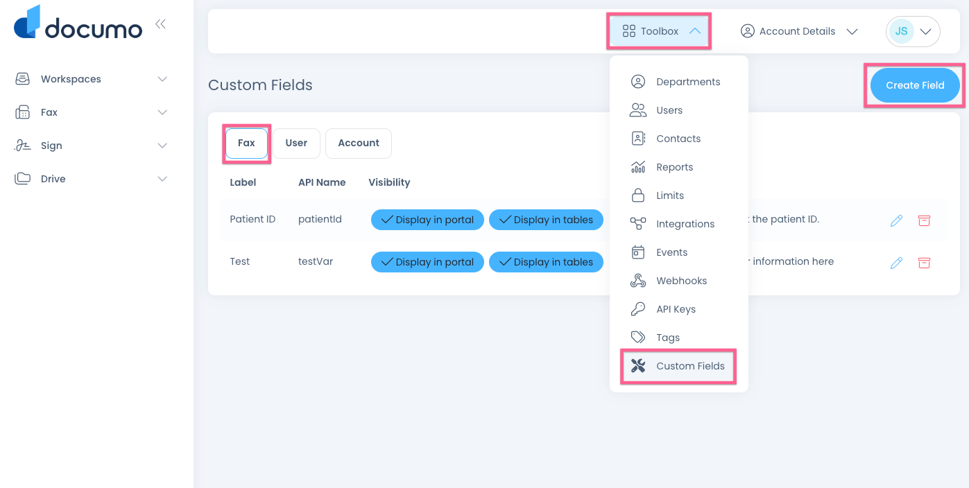 This article will show you how to create and use custom fields for faxes, users, and accounts.