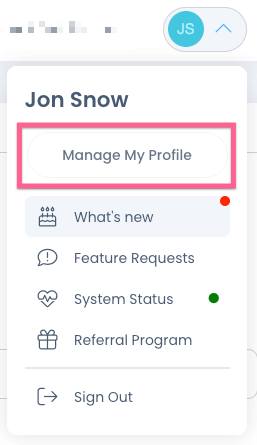 First, click the user menu, then Manage My Profile: